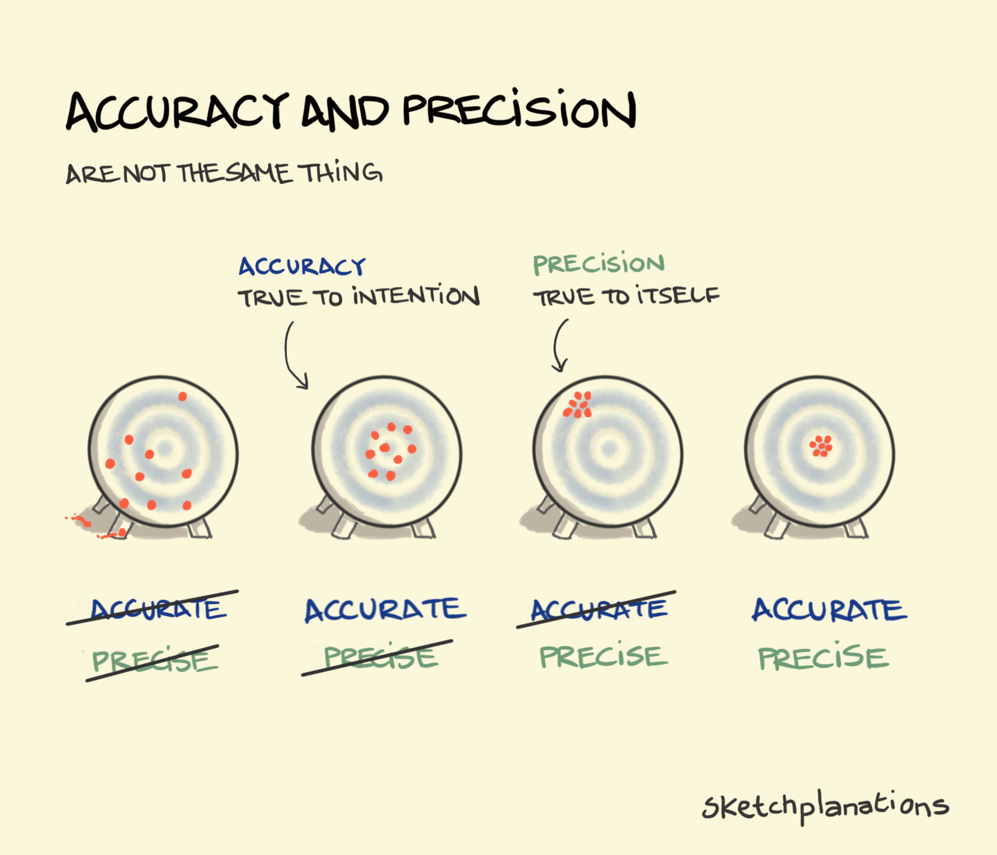 Accuracy is true to intention and precision is true to itself I learned from Simon Winchester’s book, Exactly: How precision engineers created the Modern World. Huge improvements in the precision of our production led to all the wonders of modern manufacturing where we expect everything to be near enough identical every time. More in the podcast.