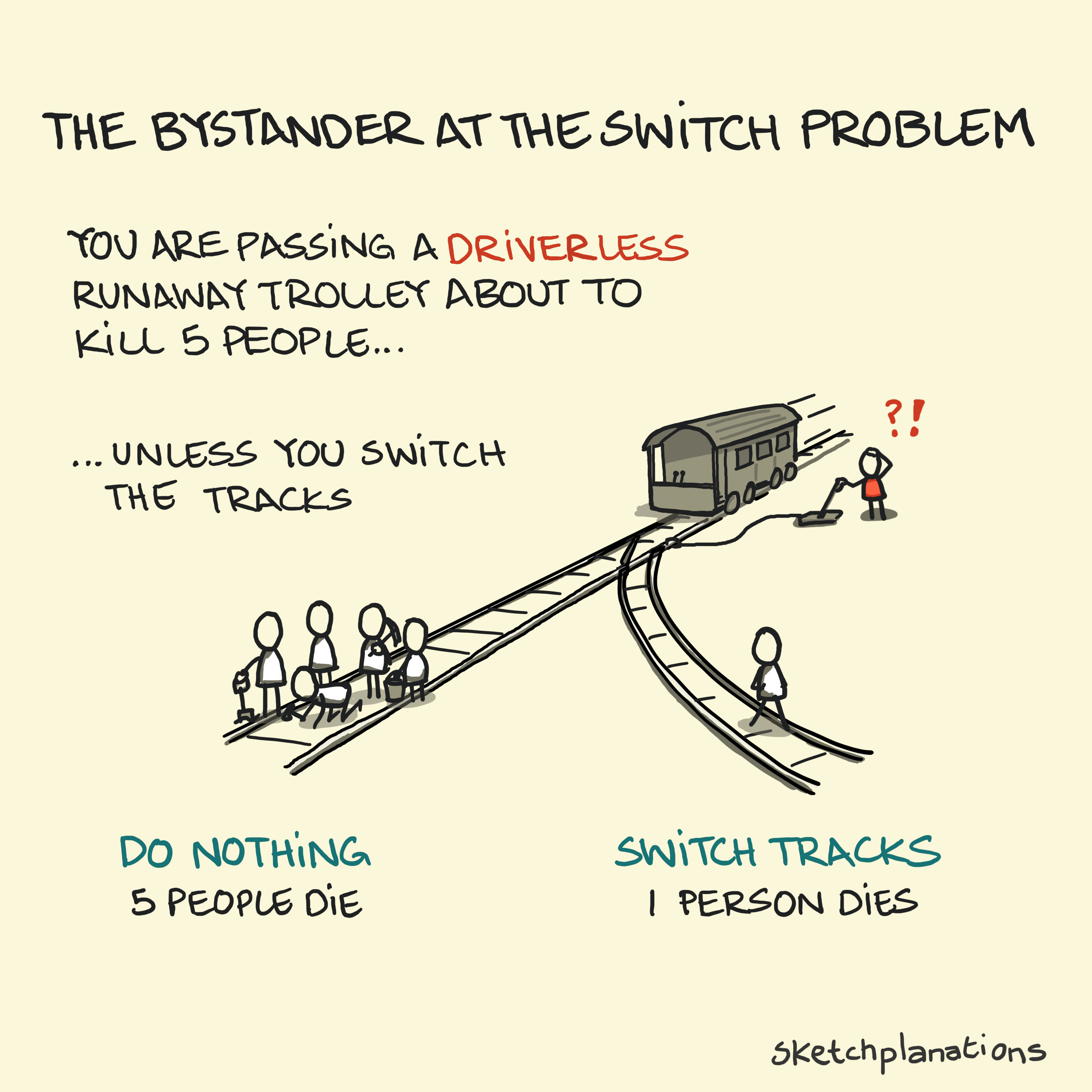 Imagine you’re the driver of a runaway trolley whose brakes have failed. Ahead on the track, five people are working and will be killed if you do nothing. But you notice a side-track—if you switch the trolley to it, you’ll avoid the five, but one person on that track would be killed instead.